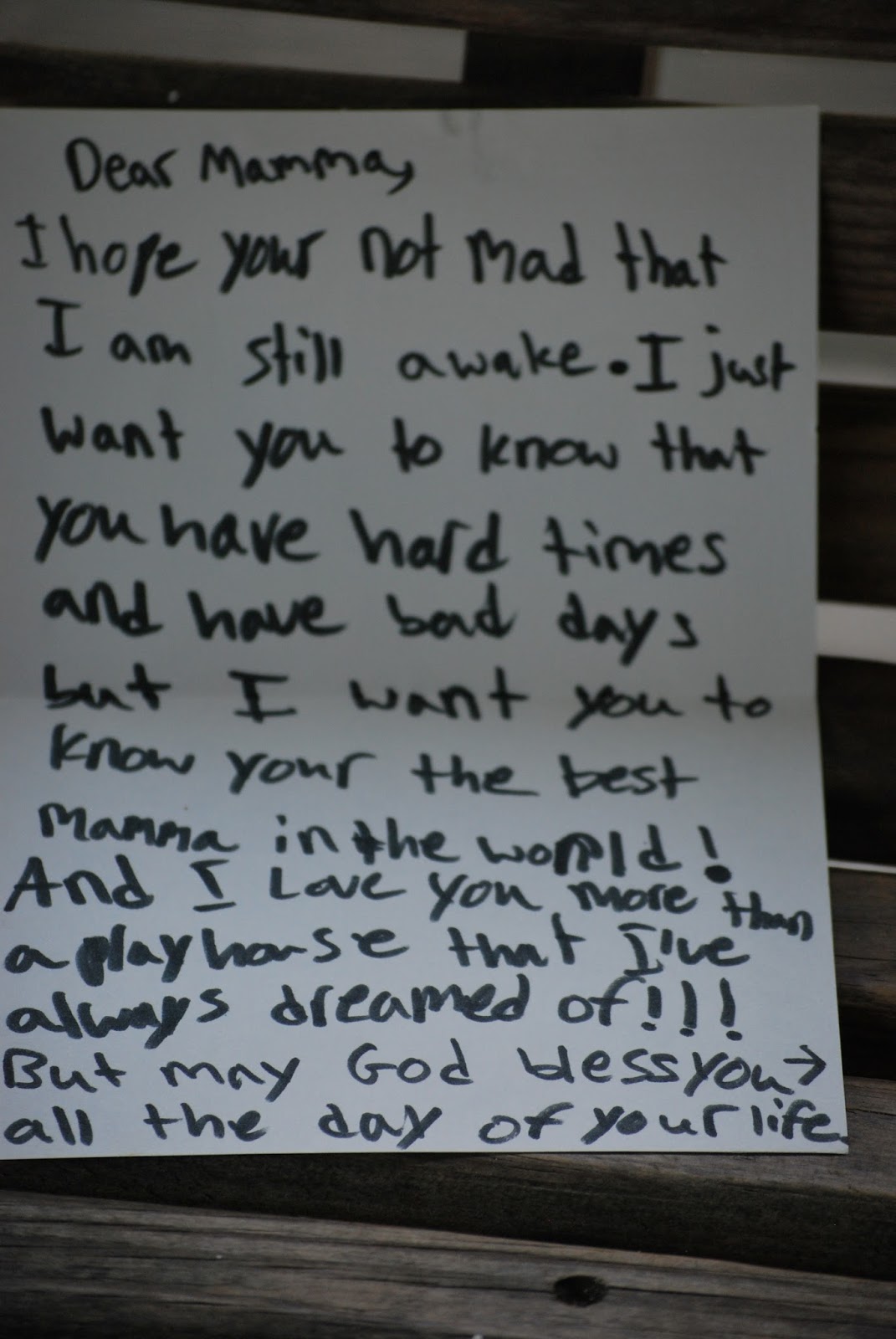 I came across this sweet little note that Mariah left on my pillow a few weeks ago. It had been a pretty rough day and I was feeling overwhelmed. My favorite line was. "I love you more than a playhouse that I've always dreamed of." :o)